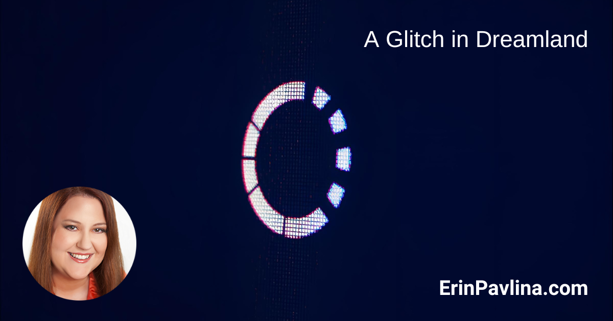 The dream itself was nothing remarkable. I was walking from the outside of my house to the inside. When I opened the door and began to cross the threshold, my dream went completely gray, and the spinning wheel of death appeared on my mental dream screen—the same spinning wheel that happens when a page is loading slowly on the internet or when your computer stops functioning.
